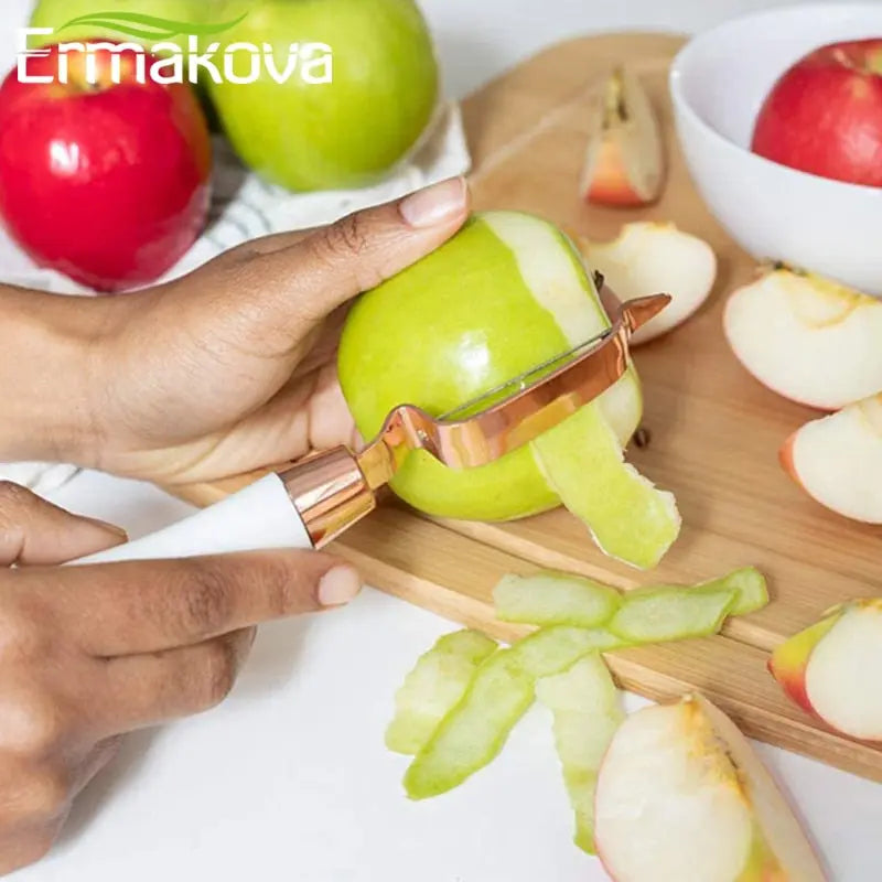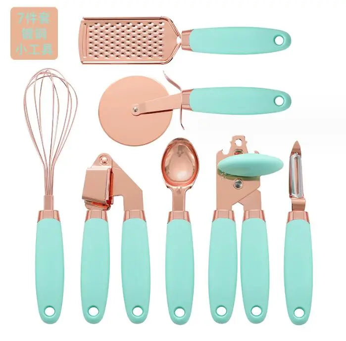 3. Cooper plated stainless steel gadgets with comfortable, soft touch, good grip, non-slip handles that absorb pressure and make it easier on your hands.